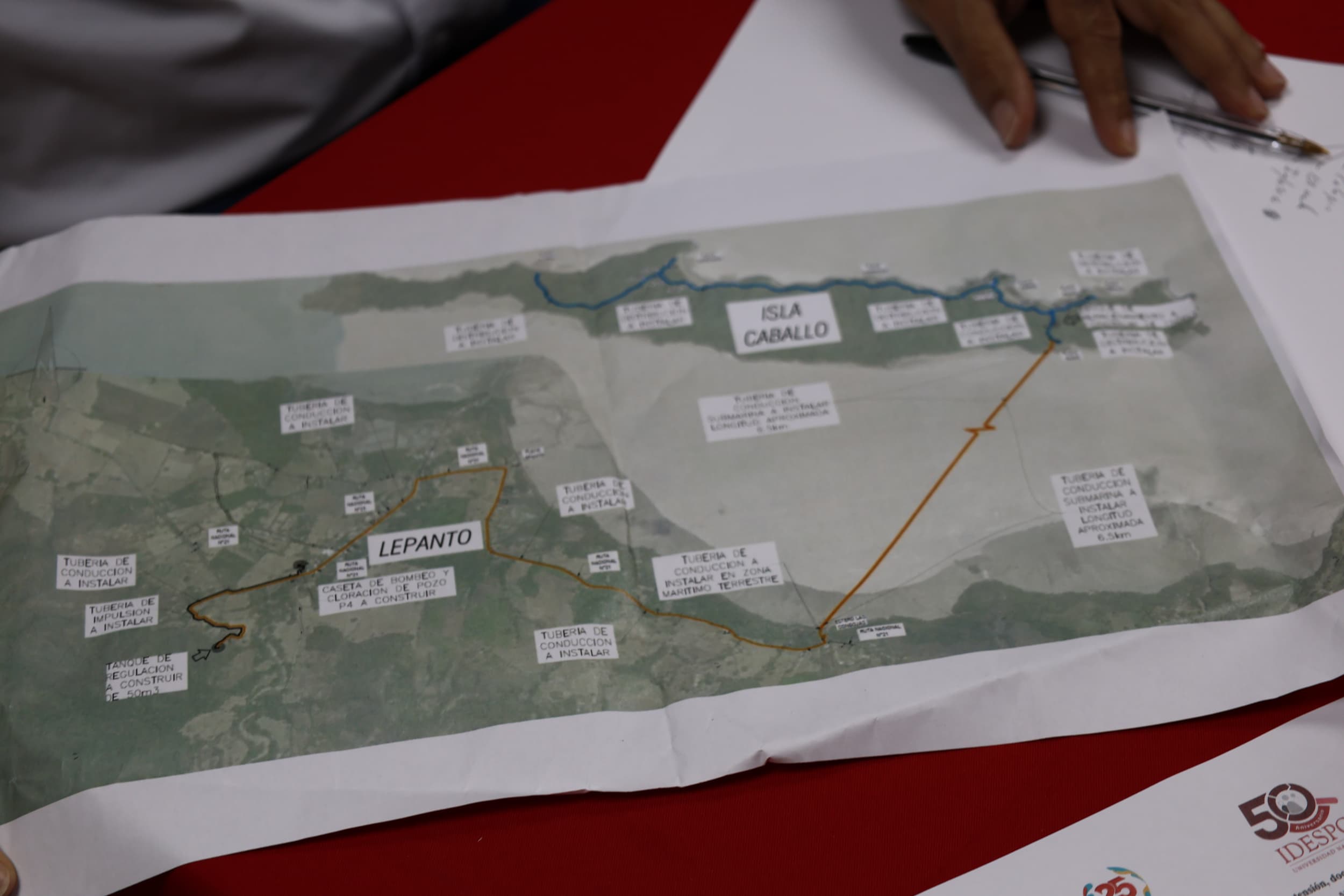 Las labores implican, además, una serie de obras de infraestructura en Isla Caballo: la instalación de tuberías de distribución, la construcción de una carretera de al menos dos metros de ancho, entre otros trabajos, que generará unos 30 puestos de trabajo para habitantes de la zona. “El proyecto está avanzando. Se tiene el conteo de los árboles que se deben cortar, los permisos, la ubicación de la trocha, las mediciones en el fondo marino y estamos en la tarea de buscar una embarcación adecuada para el traslado de los materiales”, explicó Rojas.