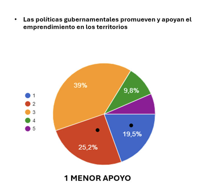 El 44.7% de los micro y pequeños empresarios consideran que las políticas gubernamentales no promueven ni apoyan el emprendimiento en los territorios, mientras que el 67.5% considera que los gobiernos locales y estatal perjudican el emprendimiento a través de los impuestos y la burocracia.