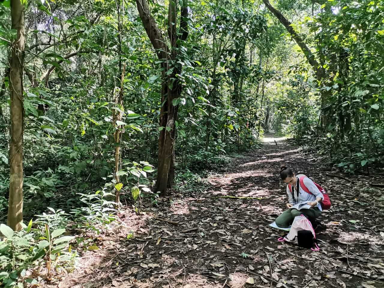 El estudio se ejecutó a inicios del 2021; es decir, en pandemia. “No podíamos tener asistentes y muchas áreas protegidas estaban cerradas”, contó la académica. Aun así, ella completó ocho días consecutivos de muestreo, con tres recorridos diarios en un transecto de dos kilómetros dentro del bosque.