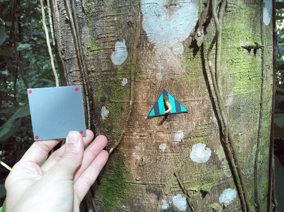 El estudio utilizó más de 15 mil mariposas de papel de distintos colores con una larva de tenebrio para atraer a los depredadores. Foto Carolina Esquivel