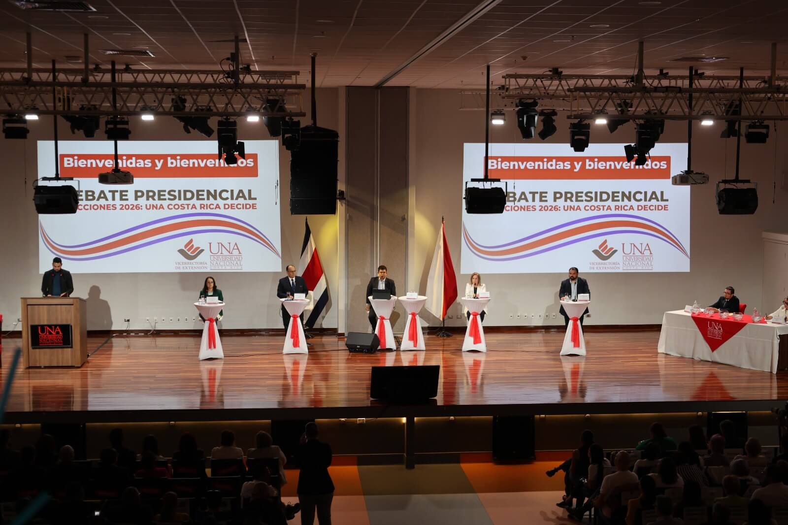 El pasado 18 de noviembre, la Universidad Nacional (UNA) realizó el segundo de tres debates: "UNA Costa Rica decide" para las elecciones presidenciales 2026, con la participación de cinco candidatos aspirantes al banquillo de Zapote, donde se abordaron cinco ejes temáticos. Cada uno contempló dos temas distintos, entre ellos, gentrificación, presupuesto para la educación, jornadas 4x3, seguridad social y minería, entre otros.