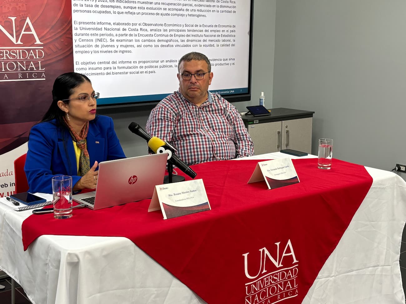 La presentación la hicieron Roxana Morales, coordinadora del Observatorio Económico y Social (OES) de la Escuela de Economía de la Universidad Nacional, junto con el académico Fernando Rodríguez de la misma instancia. El estudio lleva por nombre Dinámicas laborales pospandemia en Costa Rica (2019-2025).